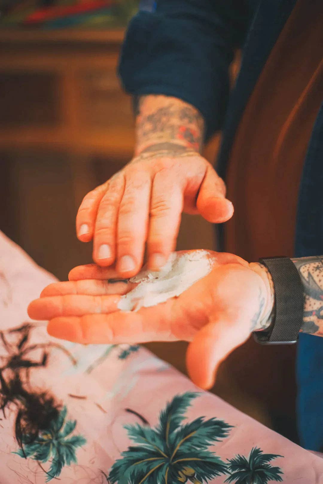 - Doseren: Neem een kleine hoeveelheid American Gardens (minder dan je denkt!) en wrijf dit krachtig warm tussen je handpalmen.